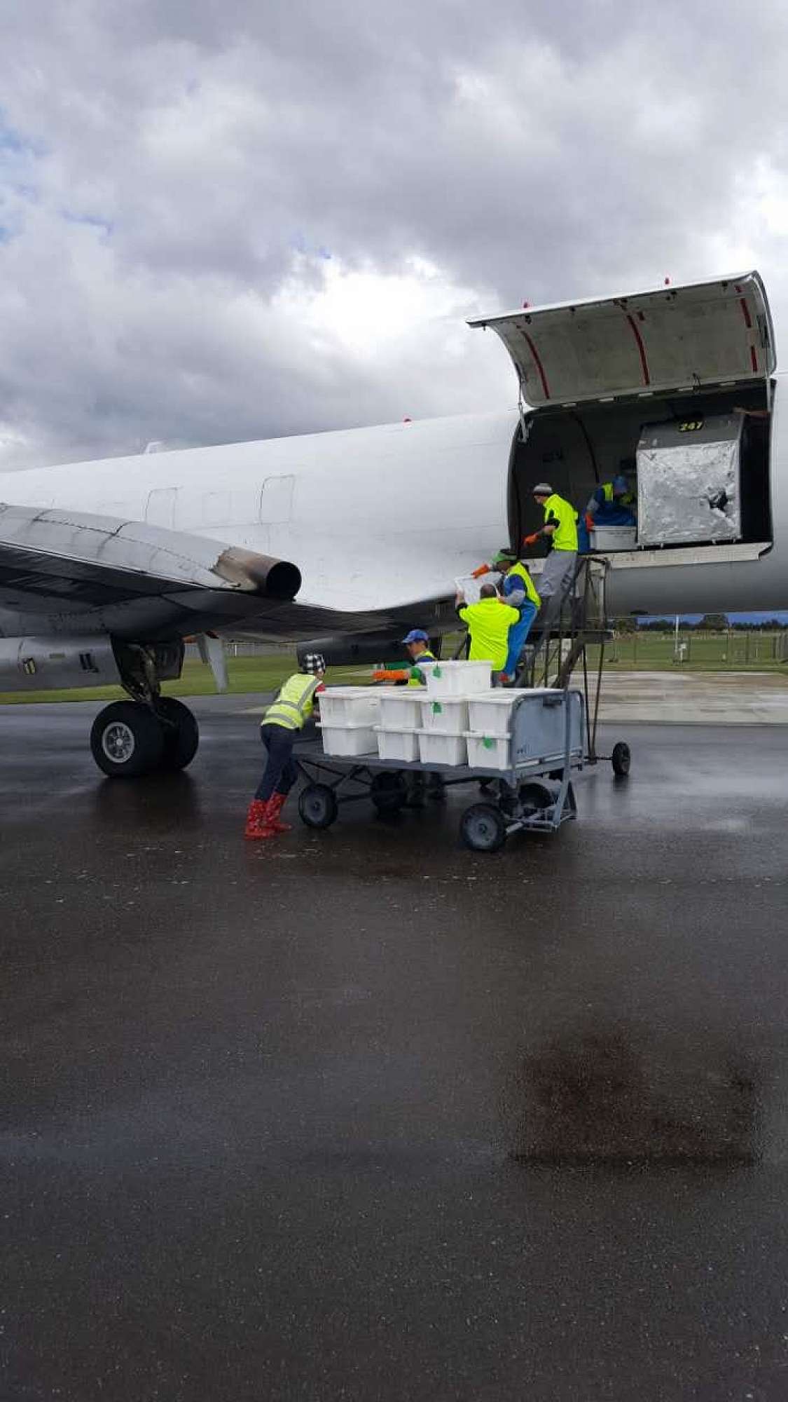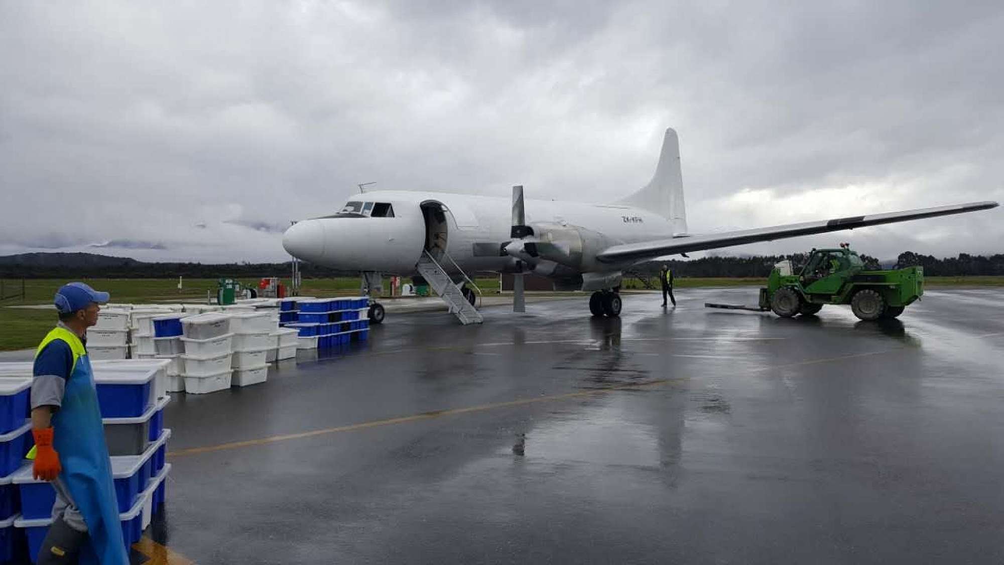 The recent fuel crisis at Auckland airport during the September festival period was untimely, but out of our control. The team quickly rallied to look at plan B. It was agreed a Chatham’s Air Plane could be charted for approximately 6 tonne of Live Lobster. The operations team in Te Anau coordinated 8 helicopters to fly from Doubtful, George and Bligh Sounds on Saturday 23 September. The Lobster was helicoptered directly into Manapouri Airport to the waiting Air Chatham’s Convair, (circa 1958). The lobster was then flown to Auckland to be received by our Auckland factory staff. The lobster was swimming in Auckland by 4 pm that day.
