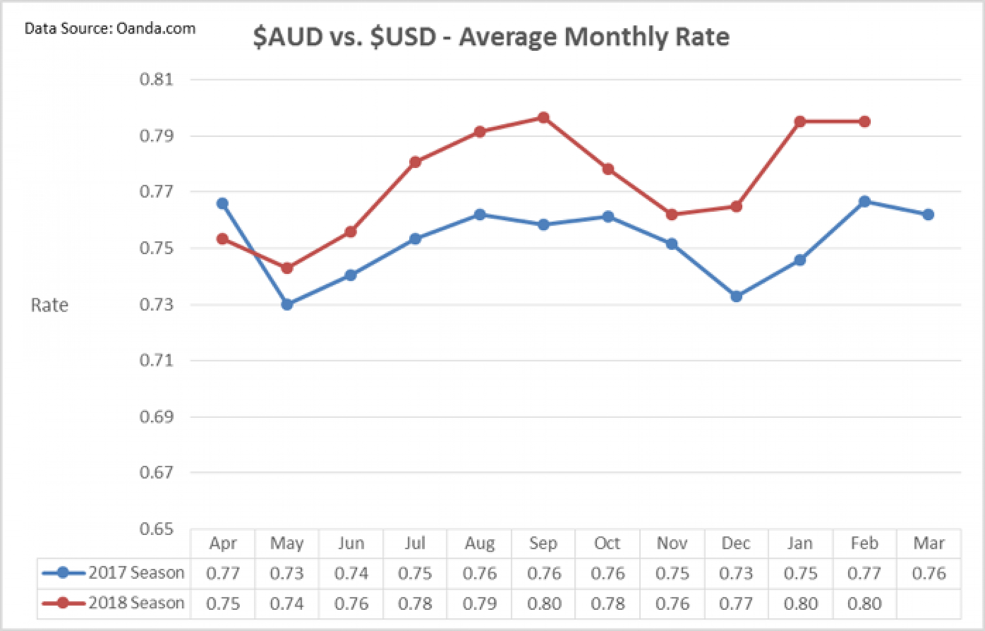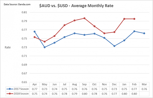 The NZD has been in the spotlight recently, with the NZD currently around 73 US cents. It briefly touched 74 US cents in late January, before declining back to the January 2018 average rate of 73 cents.