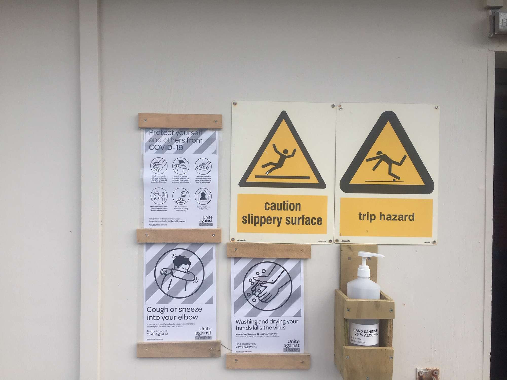 MAHIA : This year has brought out the resourcefulness in many of us. Grant Hornblow, Mahia Depot Manager, handcrafted wooden holders for Covid-19 notices and hand sanitiser. (Roving reporter Richard Hendry.)